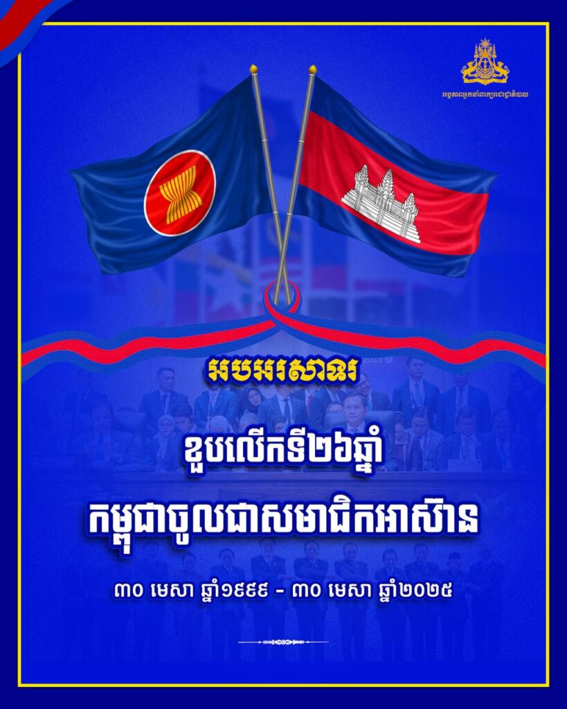 អបអរសាទរ! ខួបលើកទី២៦ (៣០ មេសា ១៩៩៩ – ៣០ មេសា ២០២៥) កម្ពុជាចូលជាសមាជិកអាស៊ាន!