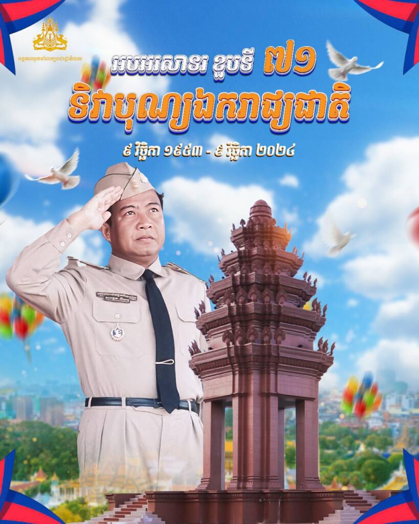អបអរសាទរ ខួបអនុស្សាវរីយ៍លើកទី៧១ នៃទិវាបុណ្យឯករាជ្យជាតិ (៩ វិច្ឆិកា ១៩៥៣-៩ វិច្ឆិកា ២០២៤) ទិវាបុណ្យឯករាជ្យជាតិ ៩ វិច្ឆិកា បានរំលឹកឱ្យប្រជាជនខ្មែរគ្រប់ៗរូបចងចាំជានិច្ចនូវព្រះរាជបូជនីយកិច្ចដ៏ឧត្តុង្គឧត្តម និងព្រះរាជបេសកកម្មដ៏ថ្លៃថ្លា ដើម្បីជាតិមាតុភូមិ និងប្រជារាស្ត្រខ្មែរ របស់ព្រះករុណា ព្រះបាទសម្តេចព្រះ នរោត្តម សីហនុ ព្រះបិតាឯករាជ្យជាតិ ព្រះបរមរតនកោដ្ឋ ដែលព្រះអង្គបានលះបង់ព្រះកាយពល និងព្រះបញ្ញាញាណ តស៊ូទាមទារឯករាជ្យភាពកម្ពុជាពីប្រទេសបារាំង នៅថ្ងៃទី៩ ខែវិច្ឆិកា ឆ្នាំ១៩៥៣