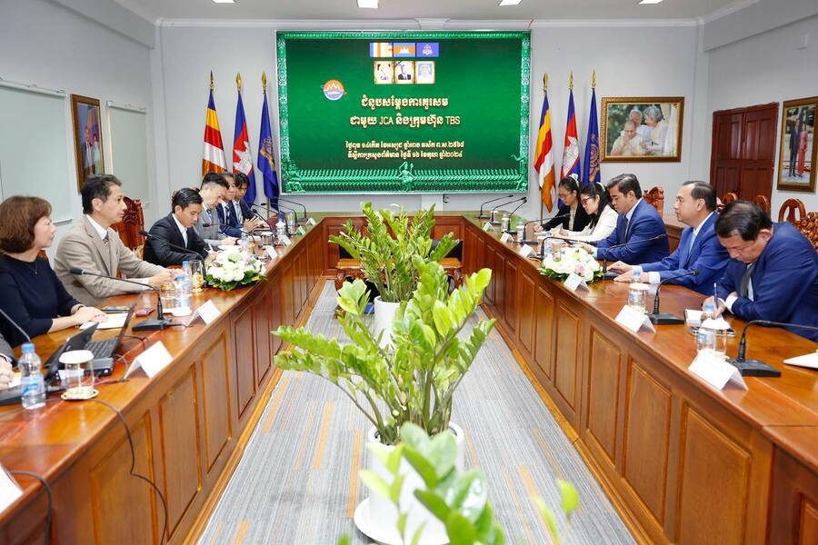 ឯកឧត្តម នេត្រ ភក្ត្រា រដ្ឋមន្ត្រីក្រសួង ព័ត៌មាន ទទួលជួបពិភាក្សាការងារជាមួយប្រតិភូជប៉ុន ដឹកនាំដោយលោក TAKEUCHI Mei តំណាងក្រុមហ៊ុន TBS Holdings Inc. នាព្រឹកថ្ងៃទី ១៦ ខែតុលា ឆ្នាំ២០២៤ នៅទីស្តីការក្រសួង រាជធានីភ្នំពេញ។
