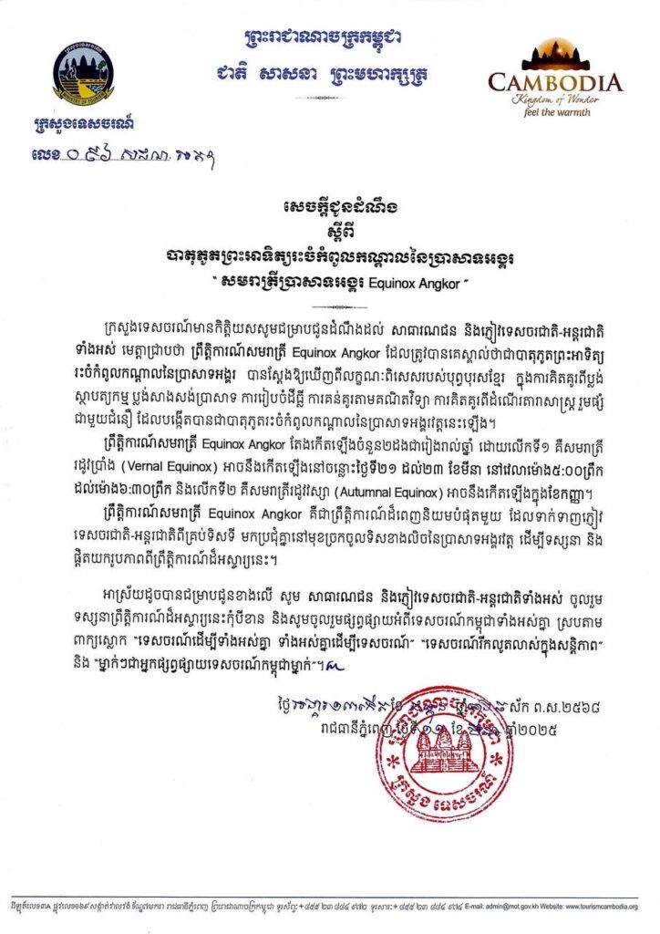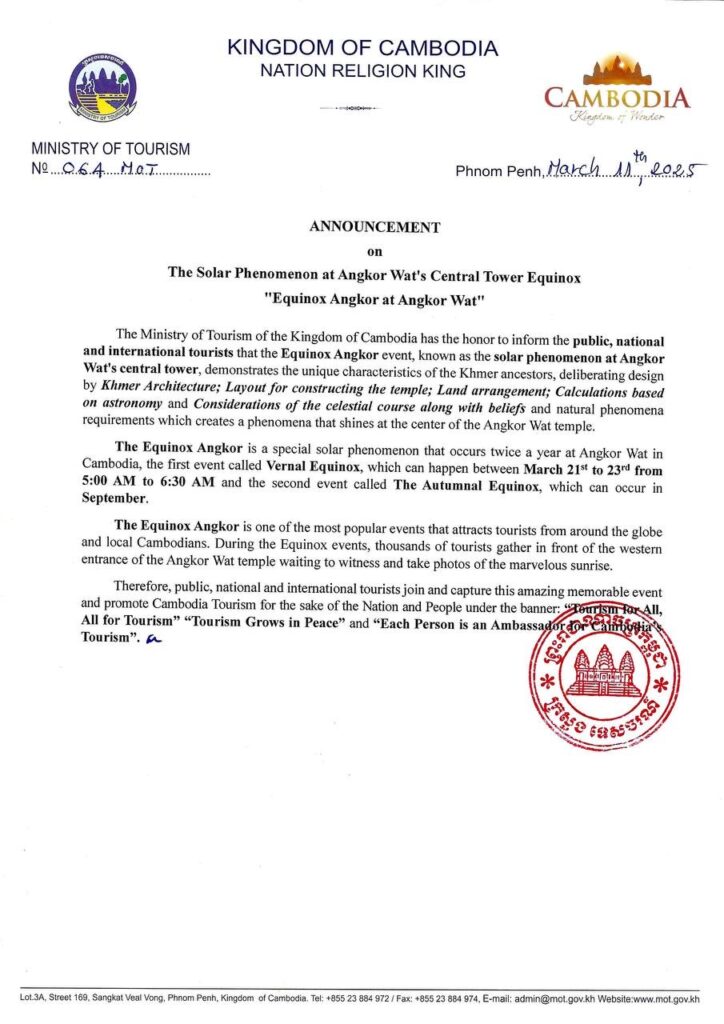 បាតុភូតព្រះអាទិត្យរះចំកំពូលកណ្តាលនៃប្រាសាទអង្គរ សមរាត្រីប្រាសាទអង្គរ Equinox Angkor តែងកើតឡើងចំនួន ២ដងជារៀងរាល់ឆ្នាំ