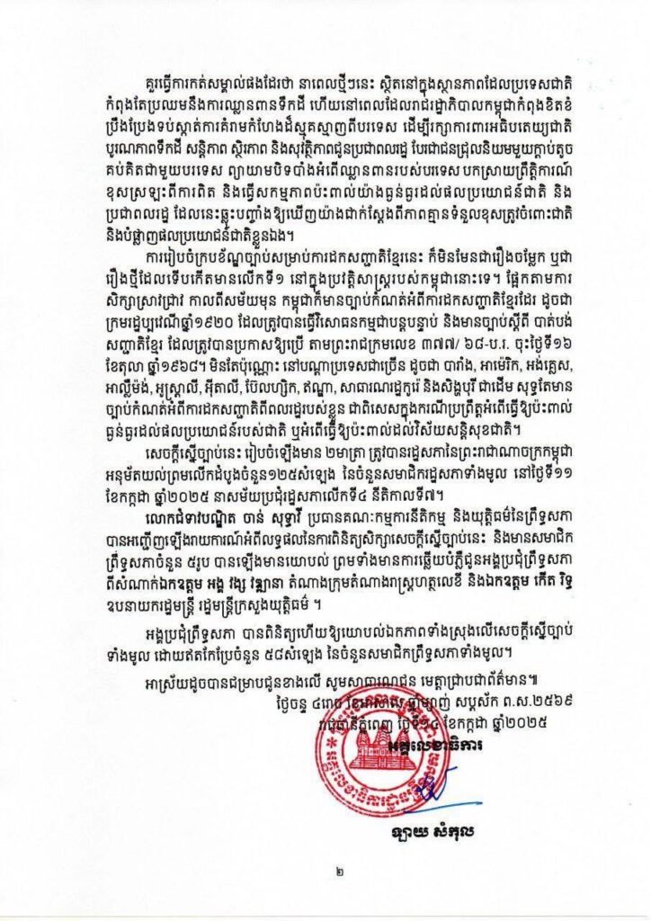សេចក្តីប្រកាសព័ត៌មានស្តីពី លទ្ធផលនៃសម័យប្រជុំព្រឹទ្ធសភាជាវិសាមញ្ញ នីតិកាលទី៥នាថ្ងៃទី១៤ ខែកក្កដា ឆ្នាំ២០២៥ នៅវិមានព្រឹទ្ធសភា រាជធានីភ្នំពេញ